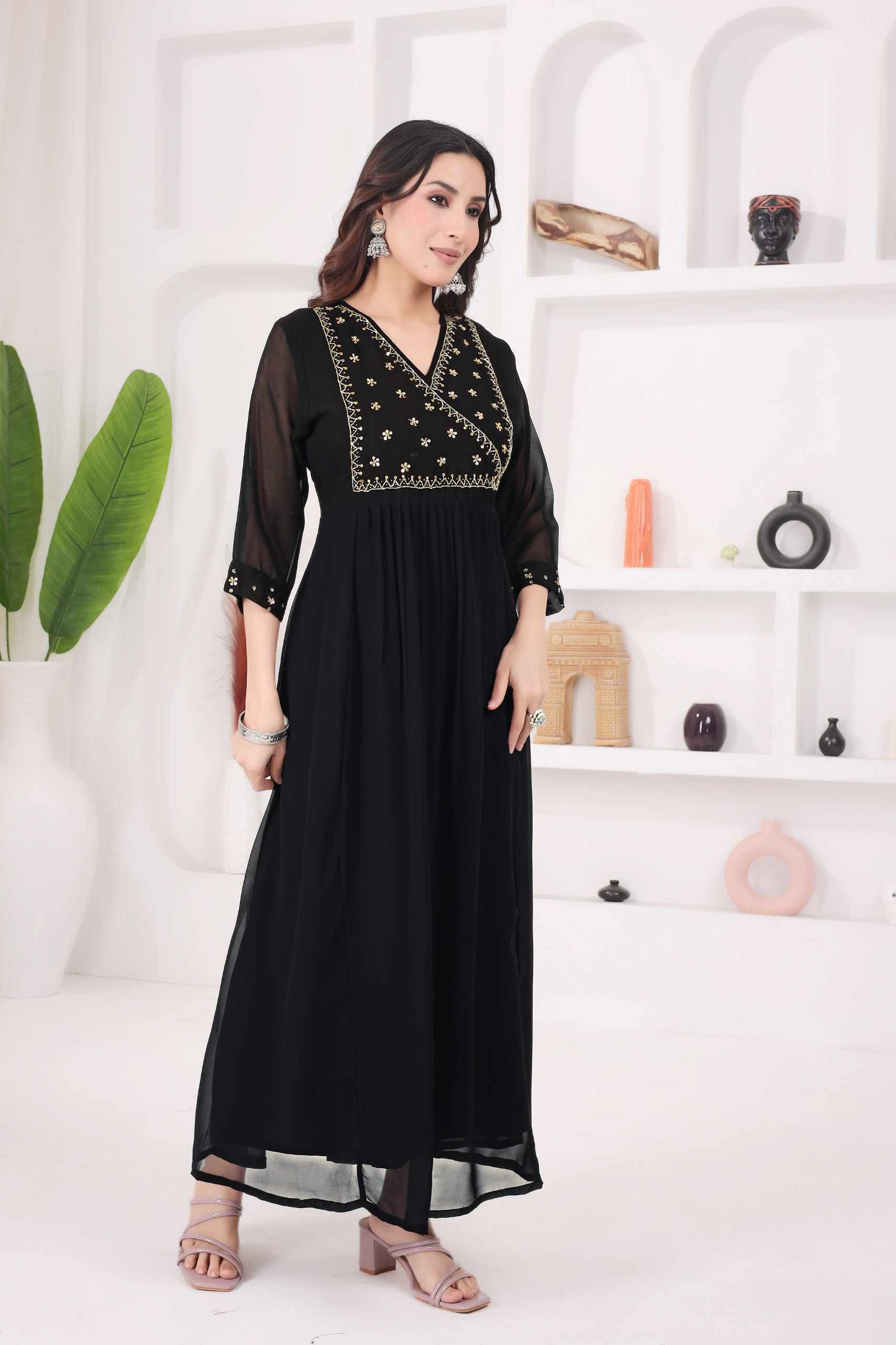 Reviews for WM12 BLACK BLOOMING GEORGETTE BEAUTIFUL HANDWORK KURTI